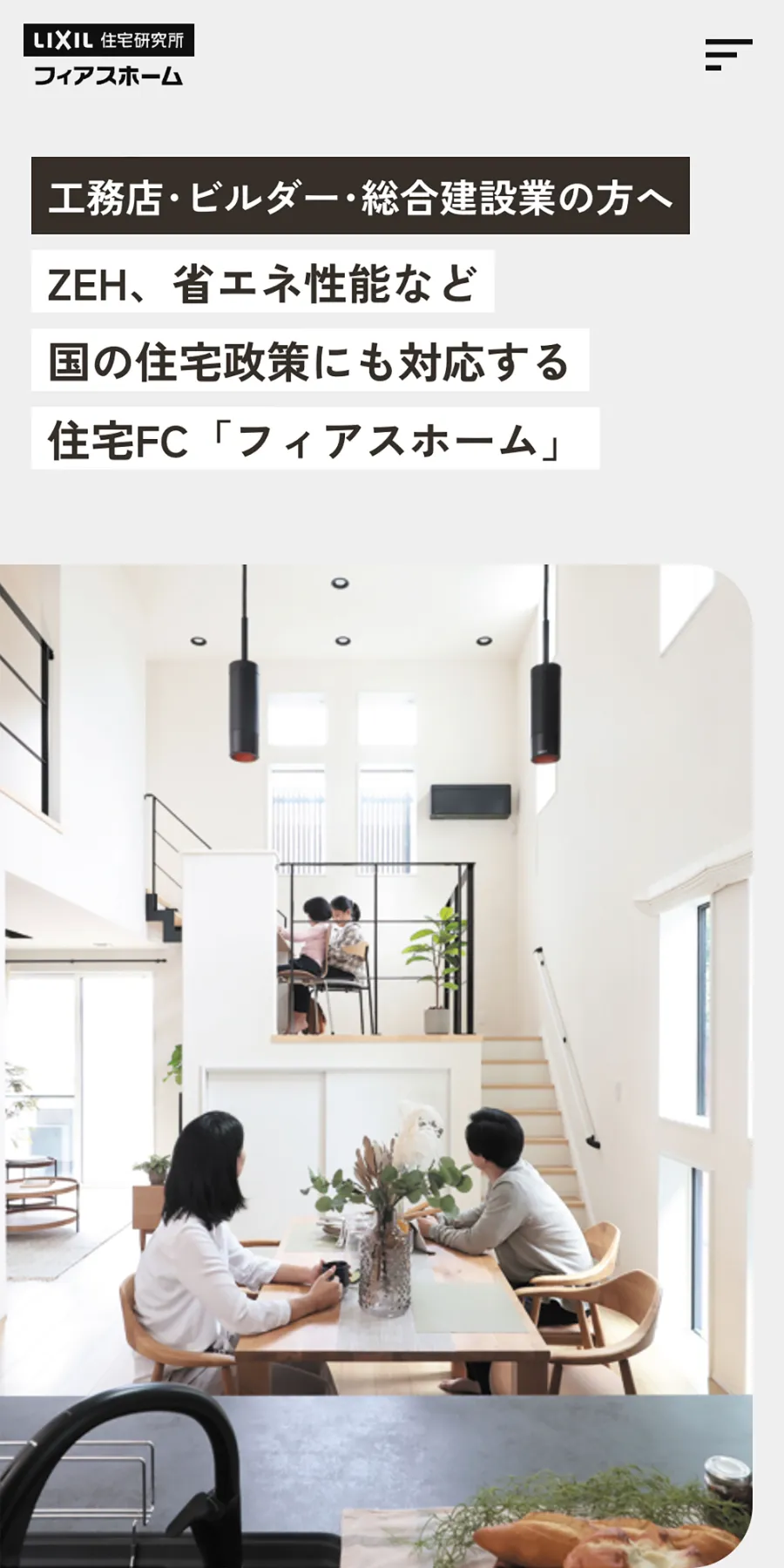 住宅フランチャイズの加盟募集という、経営判断が伴う難度の高い課題に対し、いかにターゲット(経営層・ビルダー様)の興味を惹き、信頼を勝ち取るかが鍵でした。単なる情報提供ではなく、LIXILグループとしての圧倒的な世界観を維持しつつ、ビジネスとしての優位性が直感的に伝わるBtoB特化型の情報設計を徹底しました。
